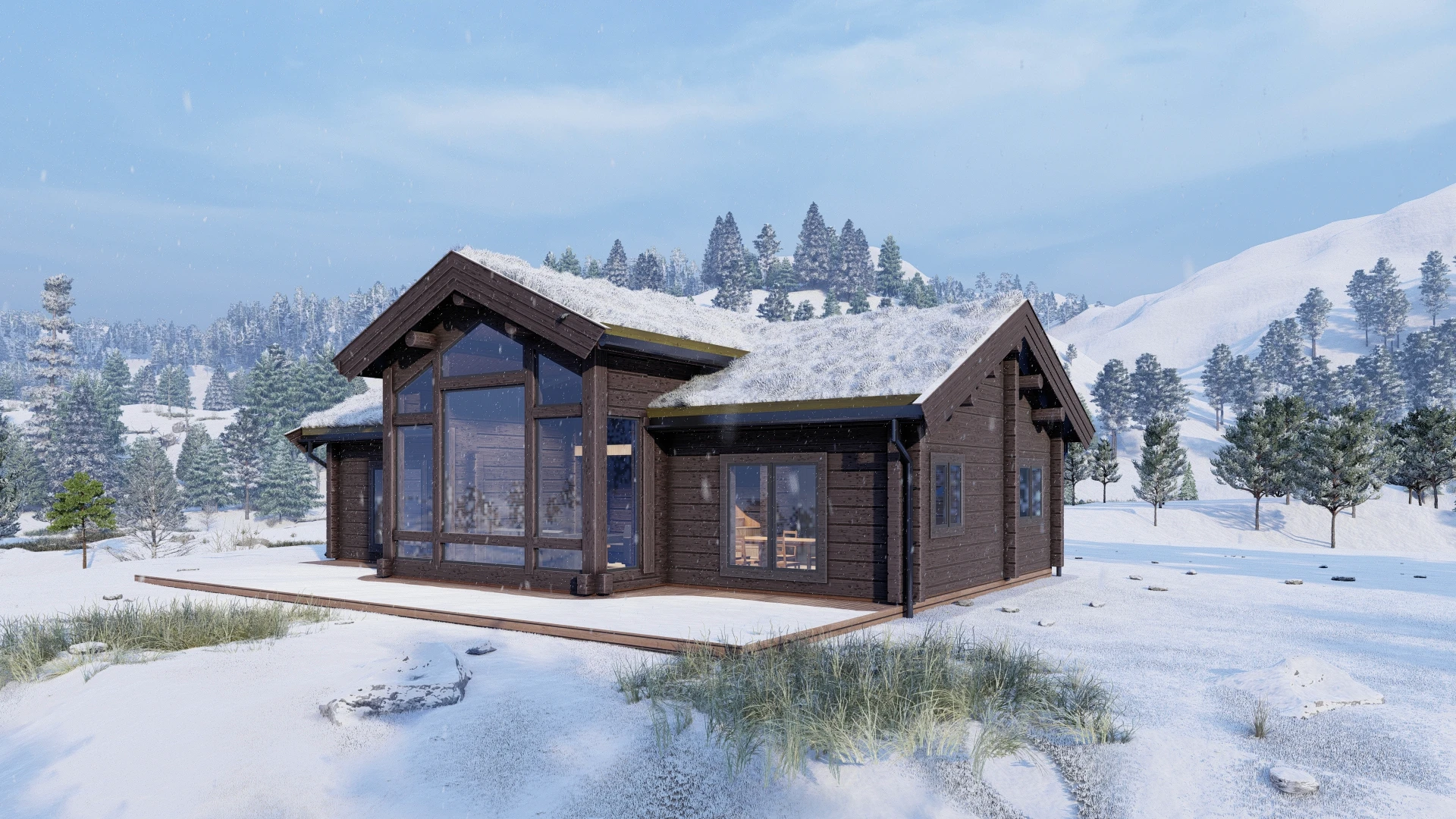 Welcome to Log Cabin LC134, where Scandinavian craftsmanship meets contemporary mountain living. With its thoughtfully planned layout, elegant natural materials, and sweeping views, this one-level retreat is designed for those who value both comfort and connection to the outdoors.